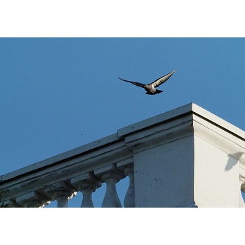 思いっきりはばたいて空に浮かんだ。鳩の目の前には、朝日が黒海に浮かんでいる。 -Odessa, Ukraine 音楽 : 雲の流氷 / Ms.Junko Yoshiyuki