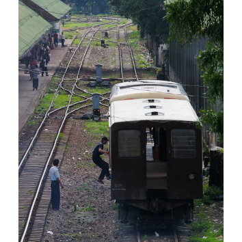 列車にジャンプjumping on board! ヤンゴン ミャンマー Yangon, Myanmar
