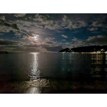 満月、波の音、街のあかりfull moon, the sound of waves, and the city lights 熱海 Atami, Izu, Japan